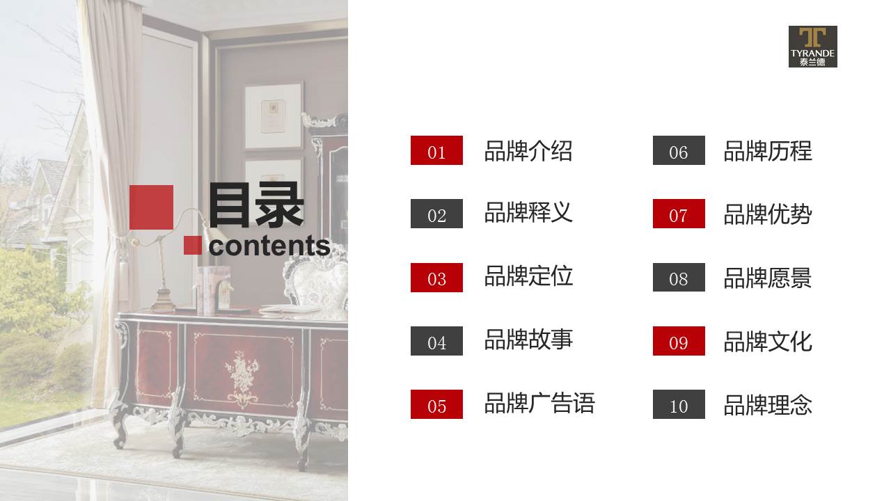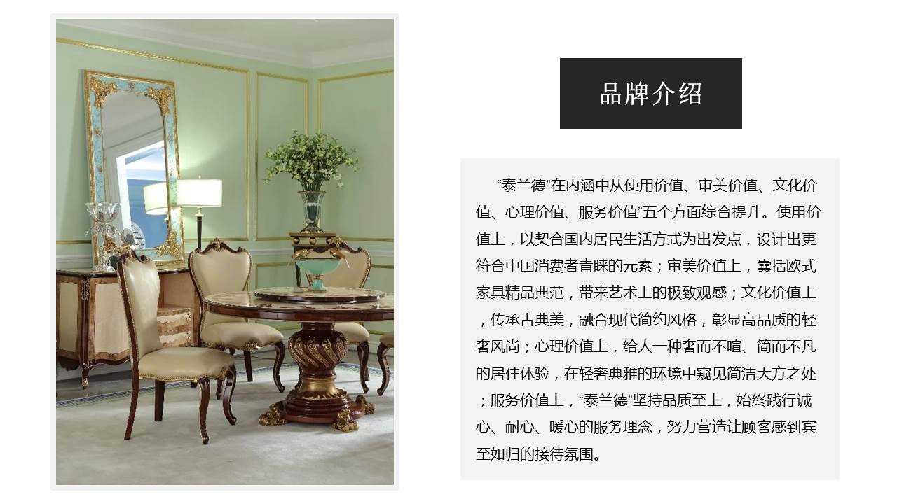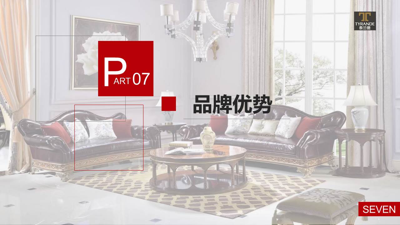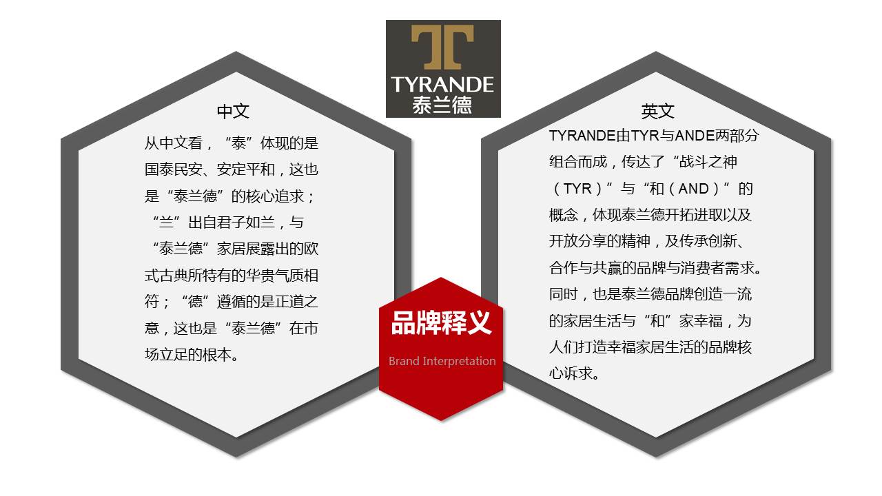 “泰兰德”旗下产品有意式新古典系列家具、法式新古典系列家具、英式新古典系列家具、轻奢后现代系列家具四大家具系列。产品以百年树龄的榉木为原材料,以意大利进口头层牛皮(意大利是全球牛皮加工工艺最好的国家),常作为奢饰品原材料的土耳其进口精梳法兰绒,整个行业环保度最高的世界500强荷兰进口阿克苏油漆,高于国家标准的美国杜邦棉“紫罗兰”特种海绵,被称为会呼吸的羽绒的鹅绒等为辅料。优质原材料,加上“泰兰德”的独特复杂的制造工艺,成就了“泰兰德”的优良品质。